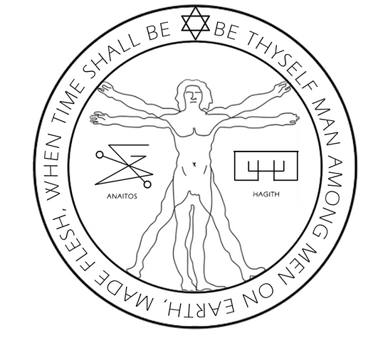 Written around the circle is âBe thyself a man among men on Earth, made flesh, when time shall beâ