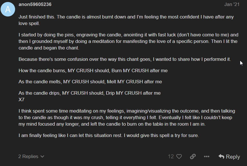 STUFF? LOL If we are talking about the spell with the two needles in the candle then that makes sense. The grammar of the (XY) stuff in it was confusing